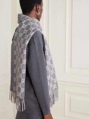 Sten Reversible Fringed Organic Wool-Jacquard Scarf
