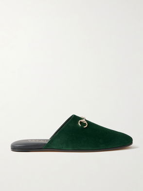 Sol Horsebit-Detailed Debossed Leather-Trimmed Suede Slippers
