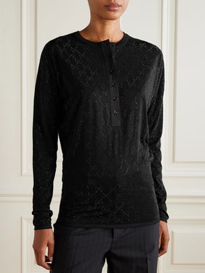 Crystal-embellished Cotton And Modal-blend Jersey Henley Top