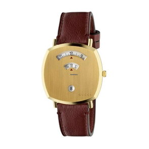 Ya157411 - Grip Yellow Gold Pvd, 3 Windows Indicating Hour, Minute & Date, Bordeaux Leather Stra