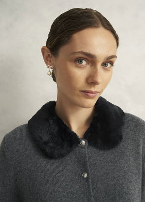 Lulah Wool Blend Fur Collar Knitted Cardigan
