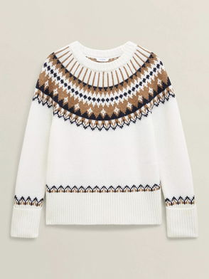 Anya Fair Isle Wool Blend Jumper, Ivory/Camel