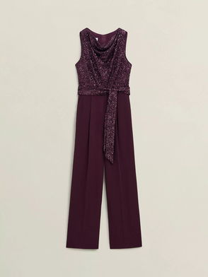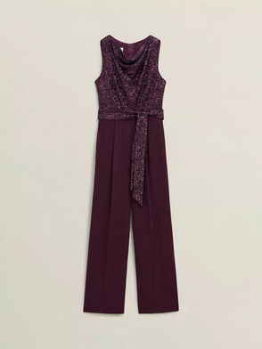 Petite Zuri Sequin Bodice Jumpsuit, Onyx Red