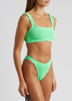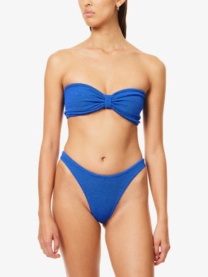 Jean Ruffled Gingham-trimmed Seersucker Bandeau Bikini