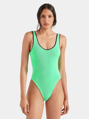 Square Neck Swim - Metallic Moss/White