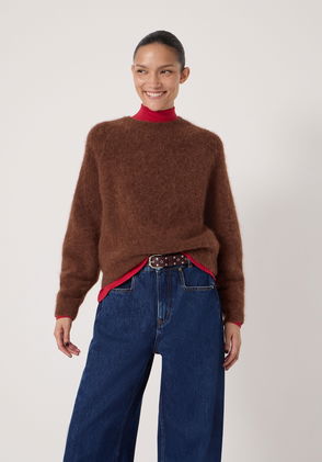 Collar Longline Pure Merino Wool Jumper, Dark Brown
