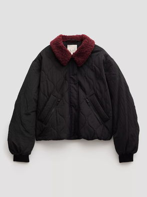 Wool Blend Logo Bomber Jacket, Black/Ecru