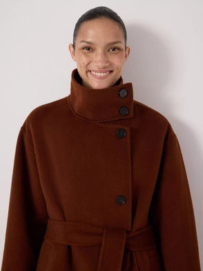 Edie Leopard Double Faced Pure Wool Coat, Brown