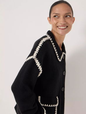 Wool Blend Animal Print Collar Neck Knit Coatigan