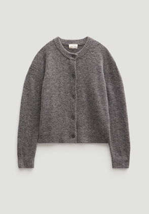 Boxy Wool Rich Cardigan, Mid Grey Marl