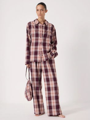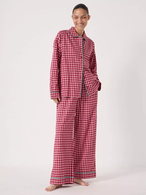 Gingham Button Through Long Pyjama Set, Pink Mix