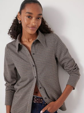 Check Jersey Long Sleeve Shirt, Brown/Multi