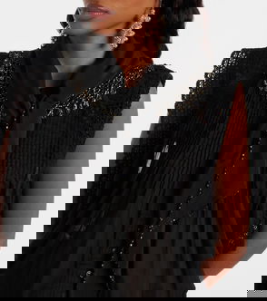 Ezane Bead-embellished Silk-crepe And Open-knit Scarf