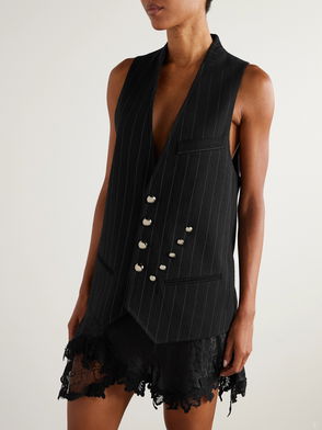Manon Pinstriped Satin And Cotton-blend Twill Vest