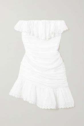 Oxani Strapless Asymmetric Broderie Anglaise Ramie Mini Dress