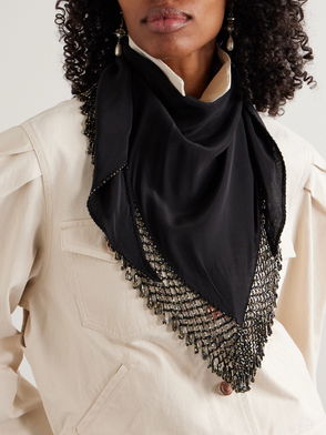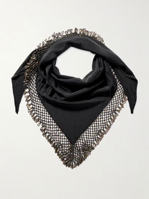 Ezane Bead-embellished Silk-crepe And Open-knit Scarf