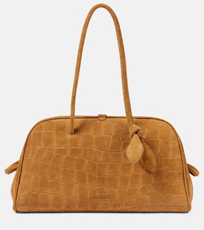 Le Bisou Perle Embellished Leather-trimmed Croc-effect Suede Shoulder Bag