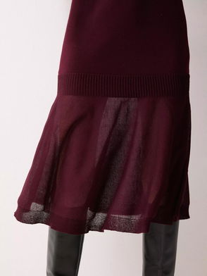 Sheer Panel Wool Rich Jumper Dress, Burgandy
