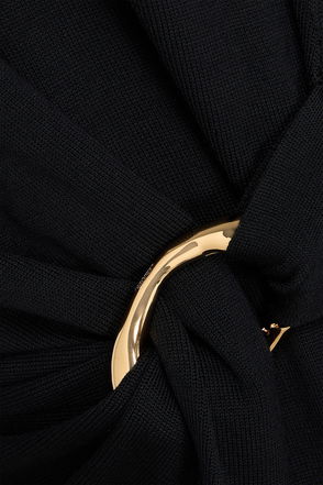 Embellished Draped Wool Midi Dress