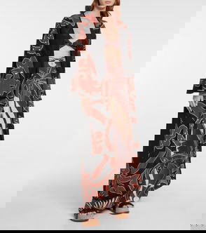 Embroidered Printed Linen Midi Dress