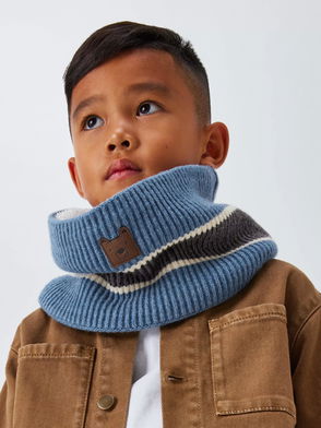 Kids' Stripe Teddy Badge Snood, Blue Multi