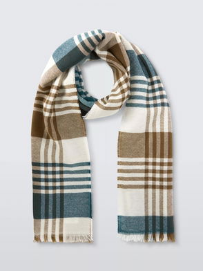 Double Face Wool Check Scarf, Green/Multi