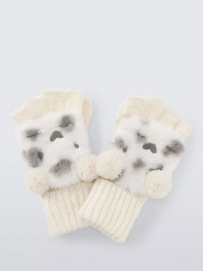 Kids' Furry Bear Flip Top Gloves, Cream