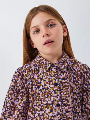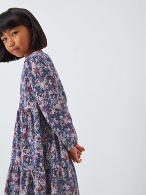 Kids' Floral Long Sleeve Smock Dress, Navy/Purple