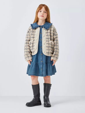 Kids' Spongy Yarn Crew Neck Cardigan, Grey