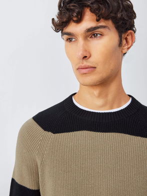 Cotton With Cashmere Crew Neck Striped Jumper, Black/Olivine
