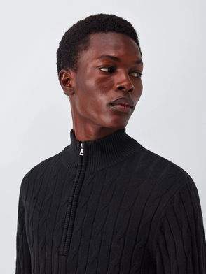 Cotton With Cashmere Half Zip Cable Knit High Neck Jumper