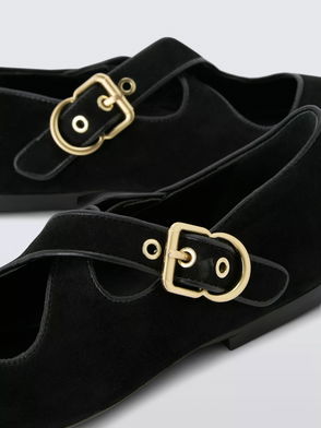 Hitch Suede Cross Strap Mary Jane Ballerina Pumps, Black