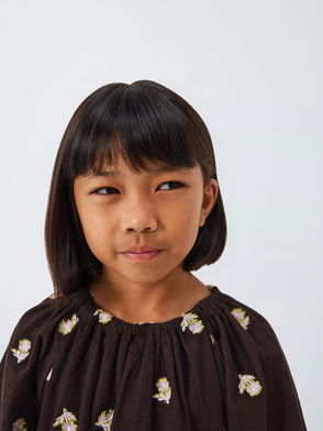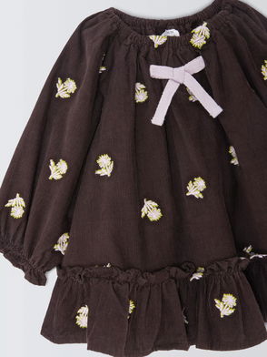 Kids' Embroidered Floral Corduroy Dress, Brown, White