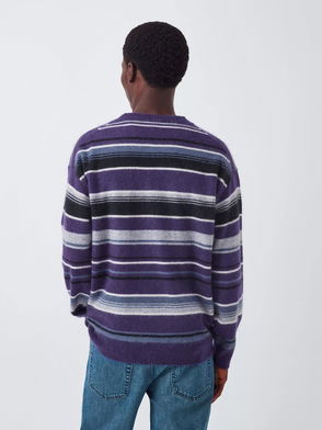 Crew Neck Stripe Merino Wool Cashmere Blend Jumper
