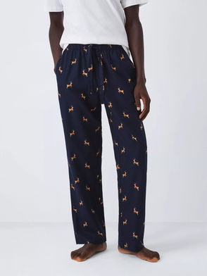 Organic Cotton Reindeer Pyjama Trousers, Blue Navy