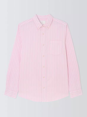 Regular Fit Button Down Collar Stripe Cotton Shirt, Pink