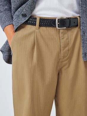 Straight Fit Pleat Cotton Trousers, Cornstalk