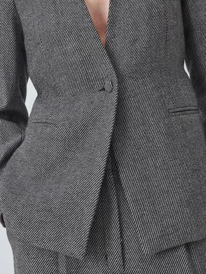 Striped Twill Wool Blend Pleat Wide Leg Trousers, Grey