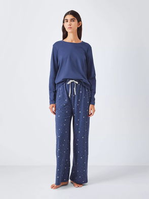Snowflake Bottom Jersey Long Pyjama Set, Navy
