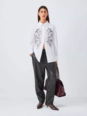 Botanical Bird Print Brushed Cotton Long Pyjama Set, Ivory