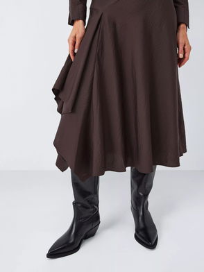 Long Sleeve Asymmetric Panelled Maxi Dress Containing LENZING™ ECOVERO™ Viscose, Brown