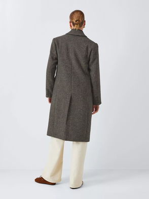 Single Breasted Wool Blend Check Coat, Black/Multi