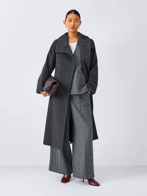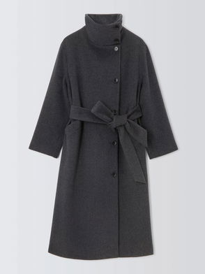 Funnel Neck Wool Rich Wrap Coat, Charcoal