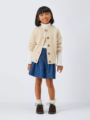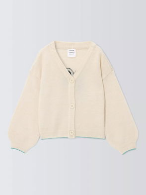 Kids' Crew Neck Chunky Knit Cardigan, Cream