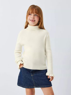 Kids' Sequin Frill Cuff Cardigan, Cream