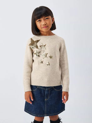 Kids' Scattered Rhinestone Long Sleeved Top, Cream