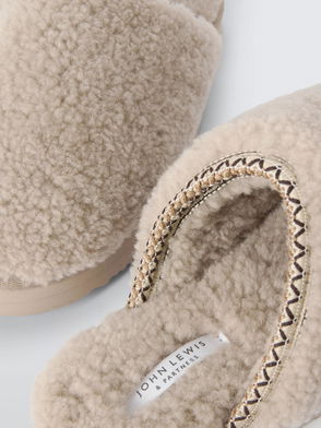 Borg Mary-Jane Square Toe Ballerina Slippers, Cream