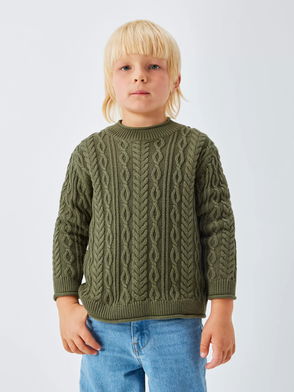 Kids' Crew Neck Cable Knit Jumper, Olive