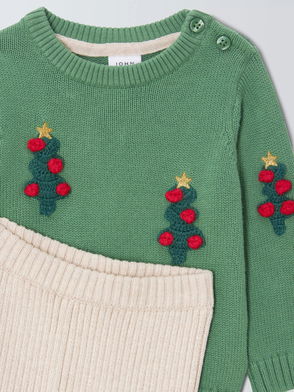 Baby Christmas Tree Crochet Knit Jumper & Leggings Set, Green