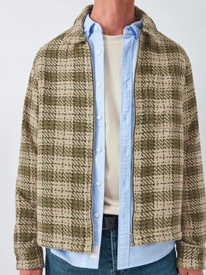 Zip Front Tartan Cotton Overshirt, Ivy Green